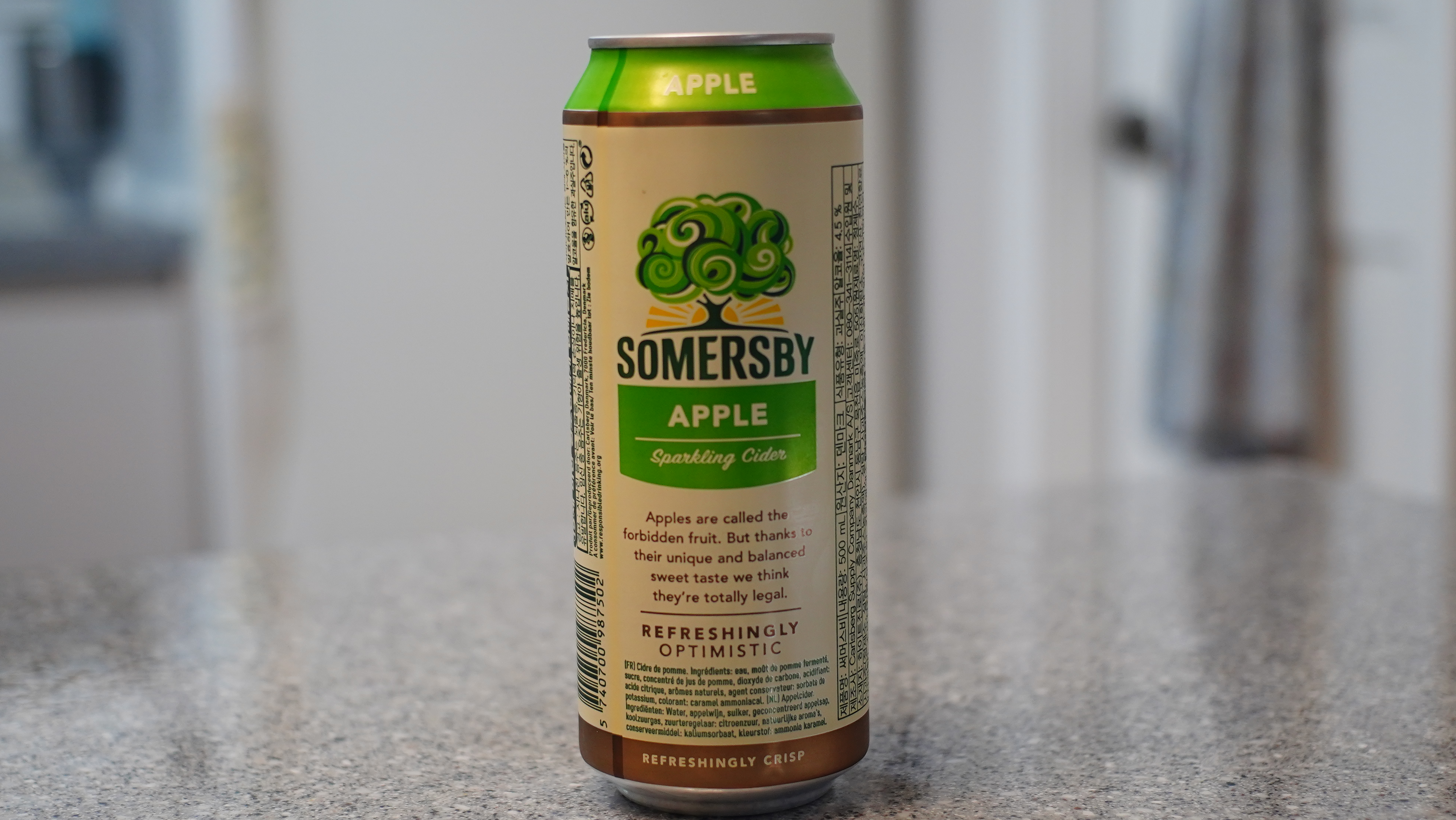 SOMERSBY APPLE Sparkling Cider. 서머스비 애플 스파클링 사이다. 500ml ALC 4.5% VOL. 원산지가 덴마크이다. 2008년에 처음으로 덴마크에서 출시되었다고 한다. 사과 농축액이 들어가 있기 때문에 사과맛 음료에 탄산수와 술을 혼합한 느낌의 맛이라서 독하고 쓴 맥주와는 전혀 다른 산뜻하고 청량감 넘치는 단맛의 술을 즐길 수 있다. 안주가 없어도 즐길 수 있는 사과탄산주로 생각하면 될 듯.