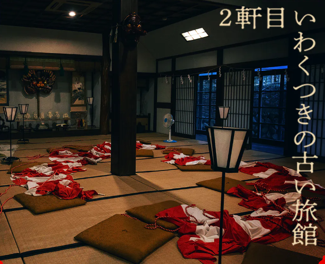 야히로가 심령 프로그램 리포터로서 로케이션 촬영을 위해 방문한 도치기현의 오래된 여관. 숙박 요금은 1박에 6,500엔. 기묘한 장식이 된 넓은 로비에는 아무도 없을 텐데, 2층에서는 쿵쾅쿵쾅 하는 정체불명의 소리가 들려온다.
